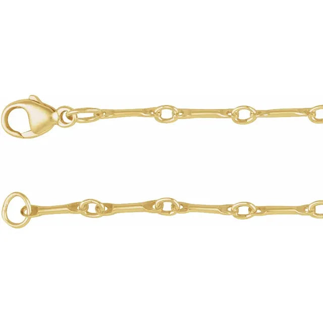 Add a touch of sparkle with this 2.4mm Bar Link Chain crafted from solid 14k gold. Its unique design stands out while offering durable, everyday wear. Perfect for layering or wearing solo, this chain brings a playful shine to any outfit.