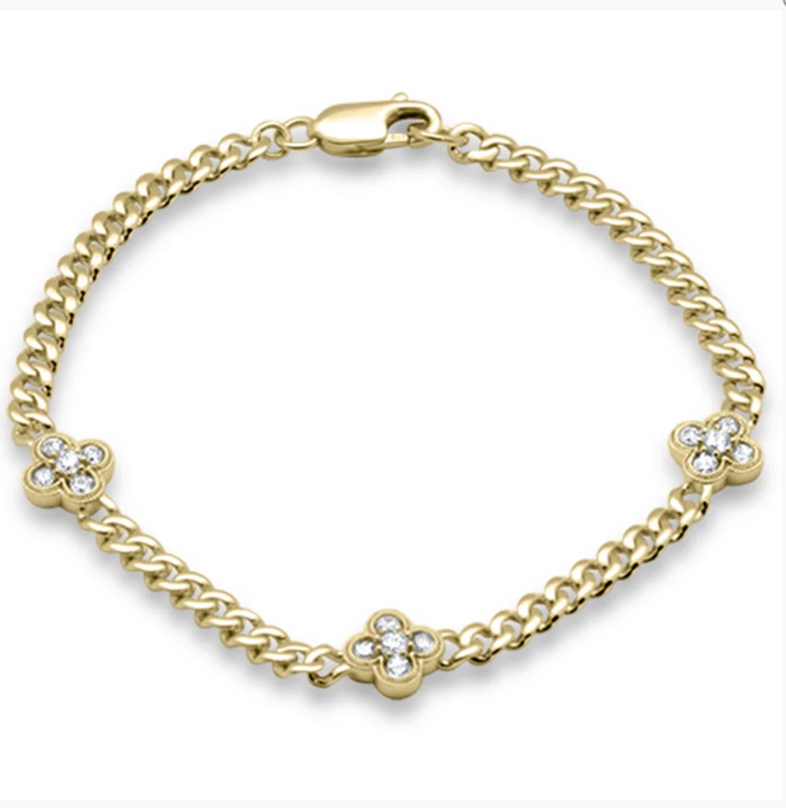 3 Clover Station Cuban Bracelet