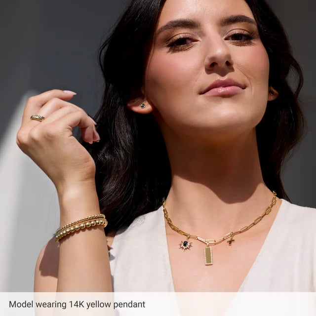 Crafted from 14k solid gold, this chunky cross charm features a functional open-and-close bail mechanism for effortless attachment and removal from chains, bracelets, or other jewelry pieces. The substantial weight and refined construction deliver a luxurious feel, while the versatile design complements both classic and contemporary styles. An excellent addition to any charm collection or a meaningful standalone pendant.