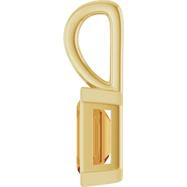 Elevate your collection with this refined citrine pendant, featuring a natural 6x4mm stone set in lustrous 14k gold. The warm, golden hues of genuine citrine complement the precious metal beautifully, creating a sophisticated piece suitable for both everyday wear and special occasions. Known as a stone of abundance and positivity, citrine adds meaningful symbolism to your jewelry wardrobe. The secure gold setting ensures durability while showcasing the stone's natural clarity and brilliance. A timeless investment piece that combines gemstone beauty with fine craftsmanship.