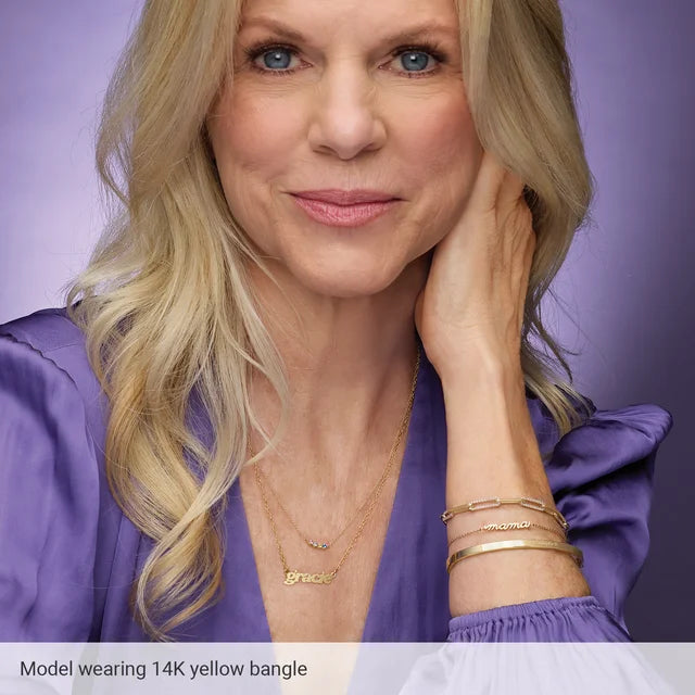 Crafted from 14k gold, this hollow bangle bracelet offers substantial presence without excess weight. Measuring 7 inches with a refined 4mm width, it strikes an ideal balance between visibility and wearability. The hollow construction makes it an accessible choice for those seeking authentic gold jewelry with everyday comfort. Perfect as a standalone statement piece or layered with other bracelets, this classic design transcends trends and complements any wardrobe.