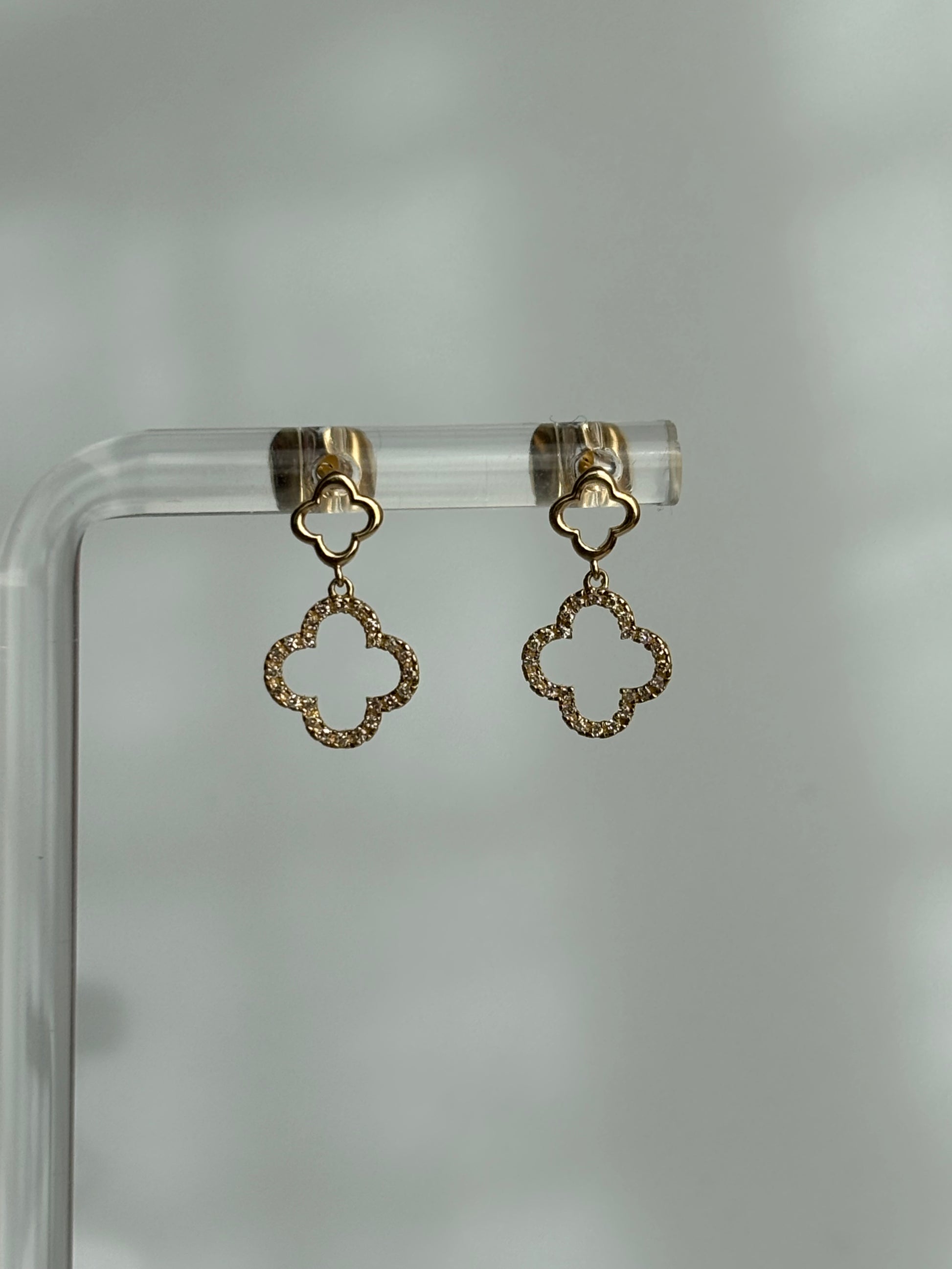 Elevate your style with our Clover Dangle Earrings! Made of 14k solid gold and adorned with 0.10cts of natural diamonds, these classic earrings add a touch of elegance to any outfit. Make a statement and sparkle with confidence knowing you're wearing quality and style.