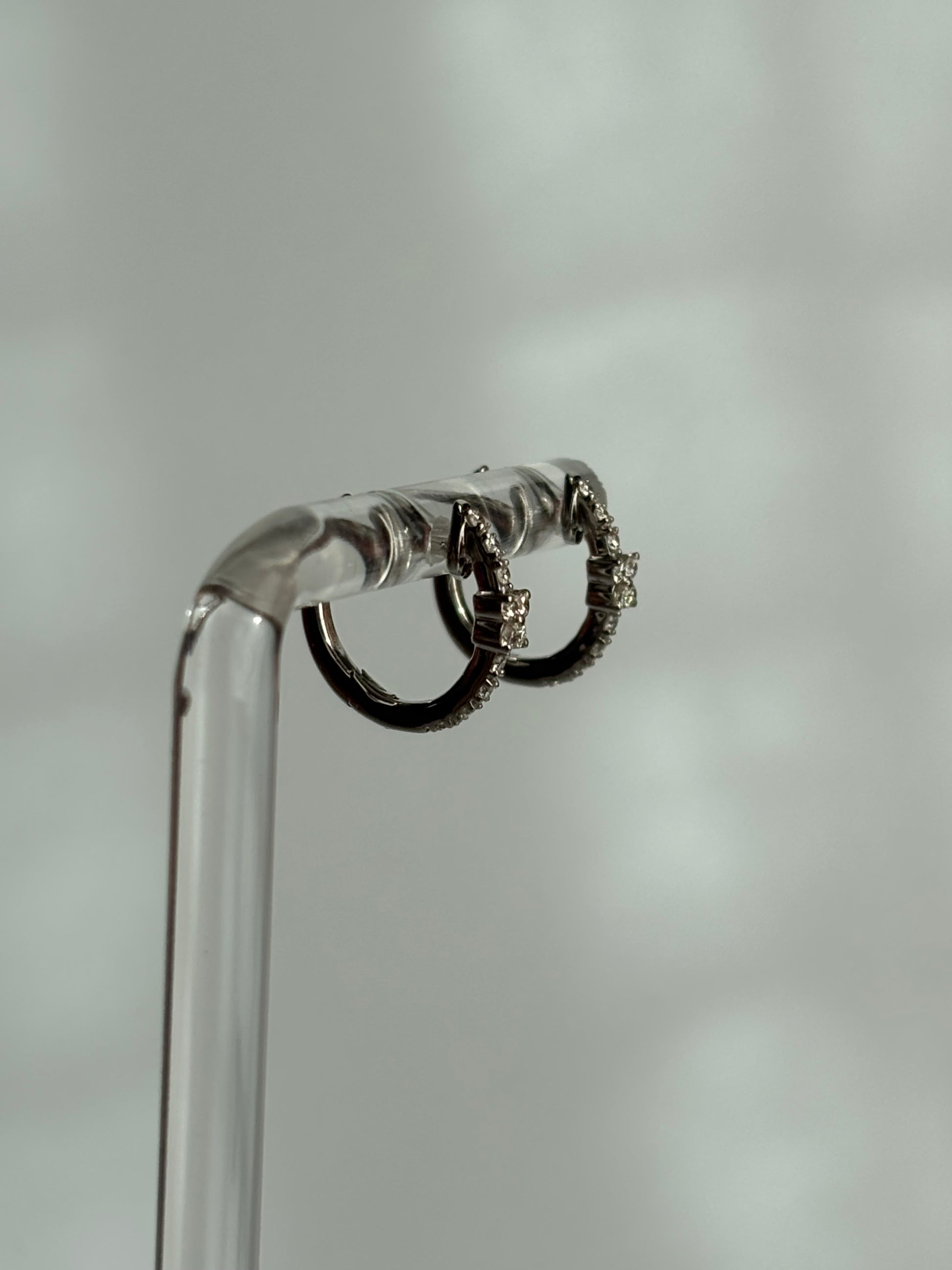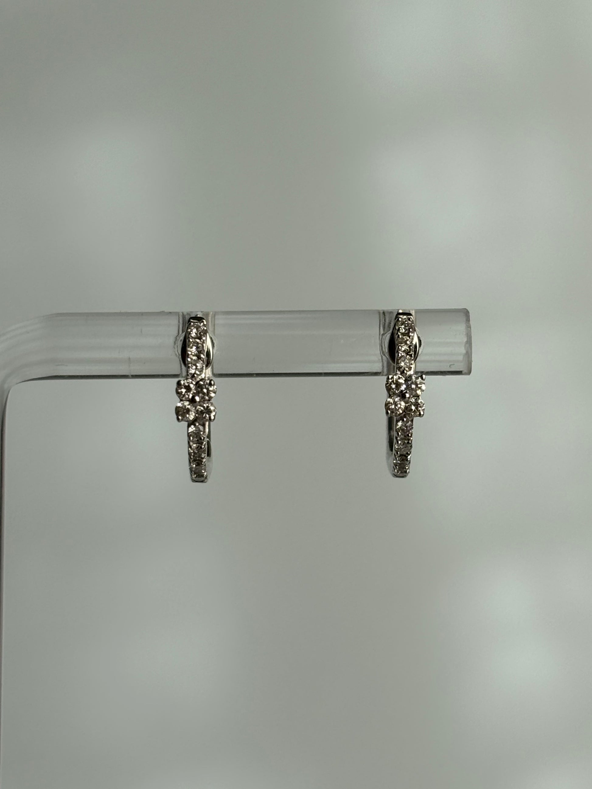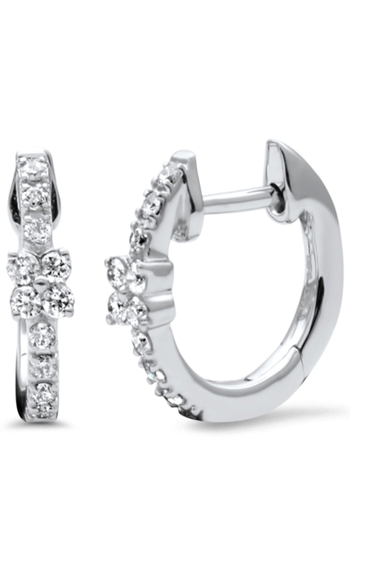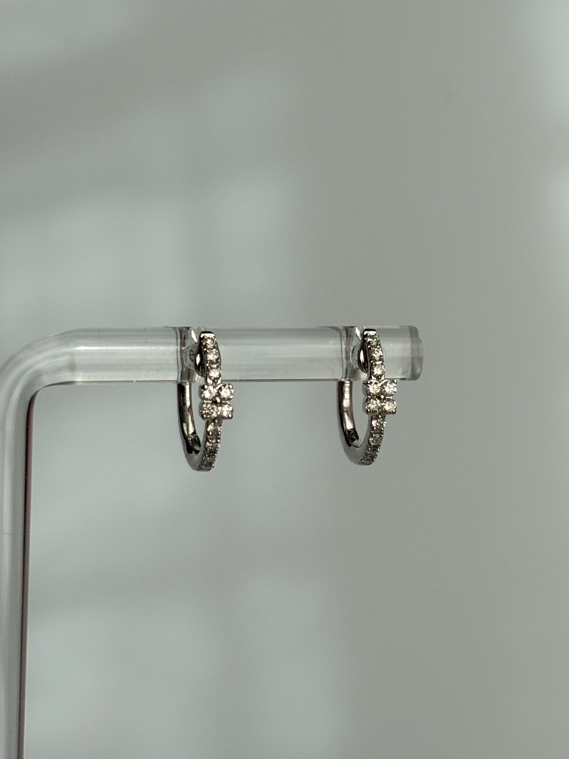 Shine bright with our Clover Diamond Huggies! Made with 14k white gold and 0.21cts of natural diamonds, these classic huggie earrings add effortless elegance to any outfit. The solid gold construction and comfortable fit make it perfect for wearing all day and night. Elevate your style with these timeless beauties.
