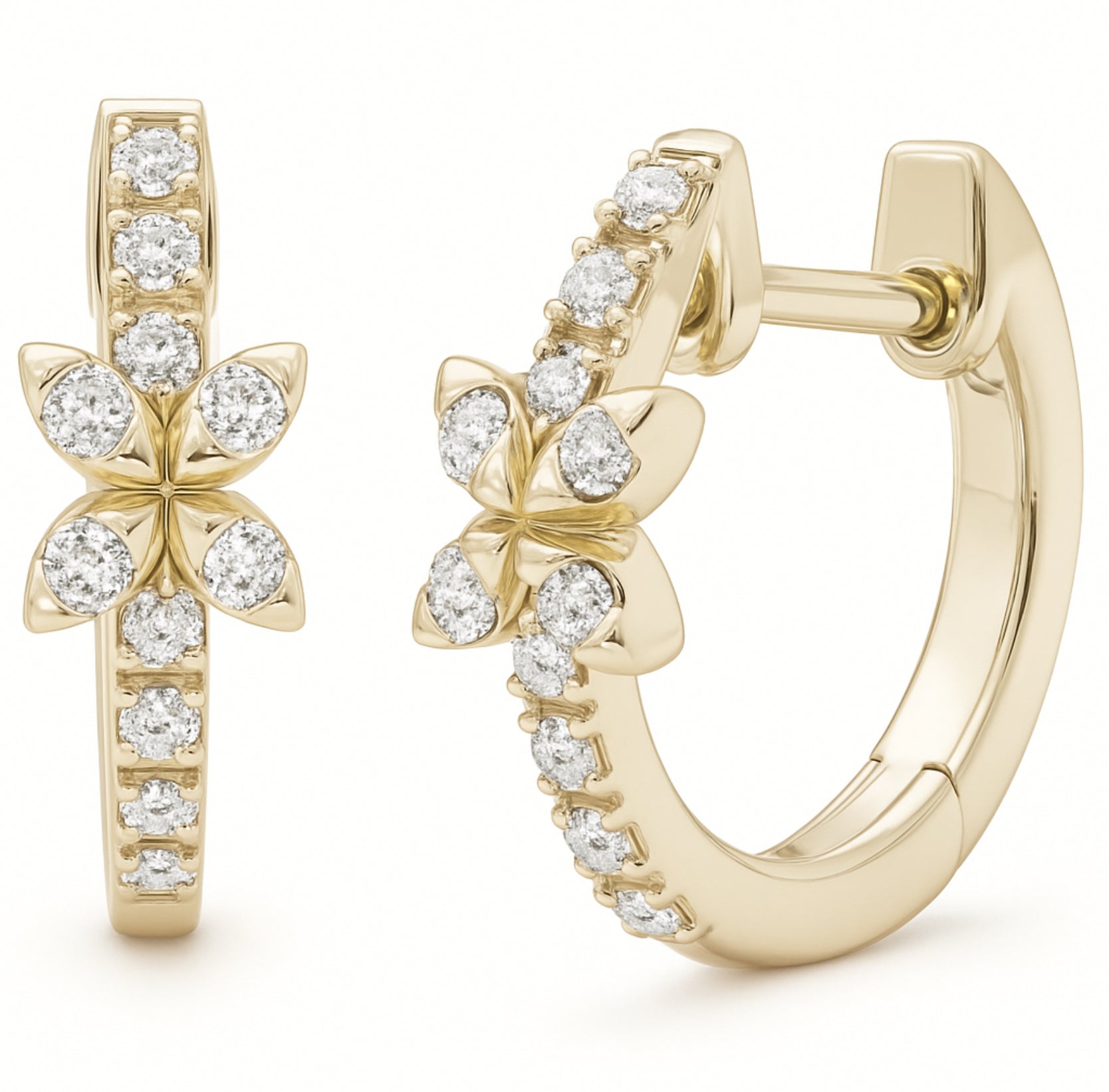Add a touch of sparkle to your everyday look with these playful Diamond Clover Huggies. Crafted from 14K gold and adorned with natural diamonds, their 12mm size fits most ears comfortably. Perfect for daily wear, these hoops bring a little charm and shine wherever you go.