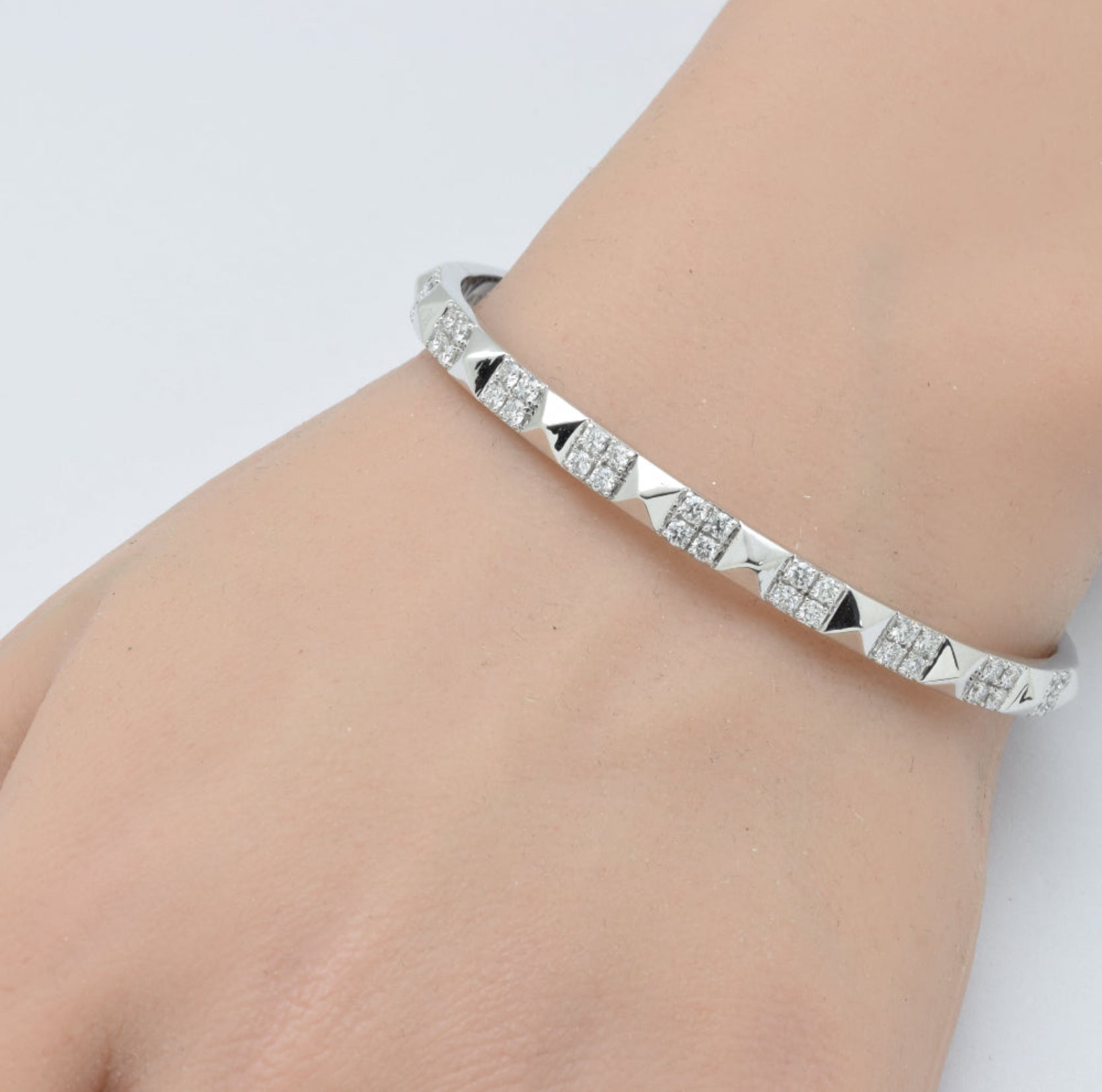 Gold Diamond Pyramid Pattern Bangle Bracelet