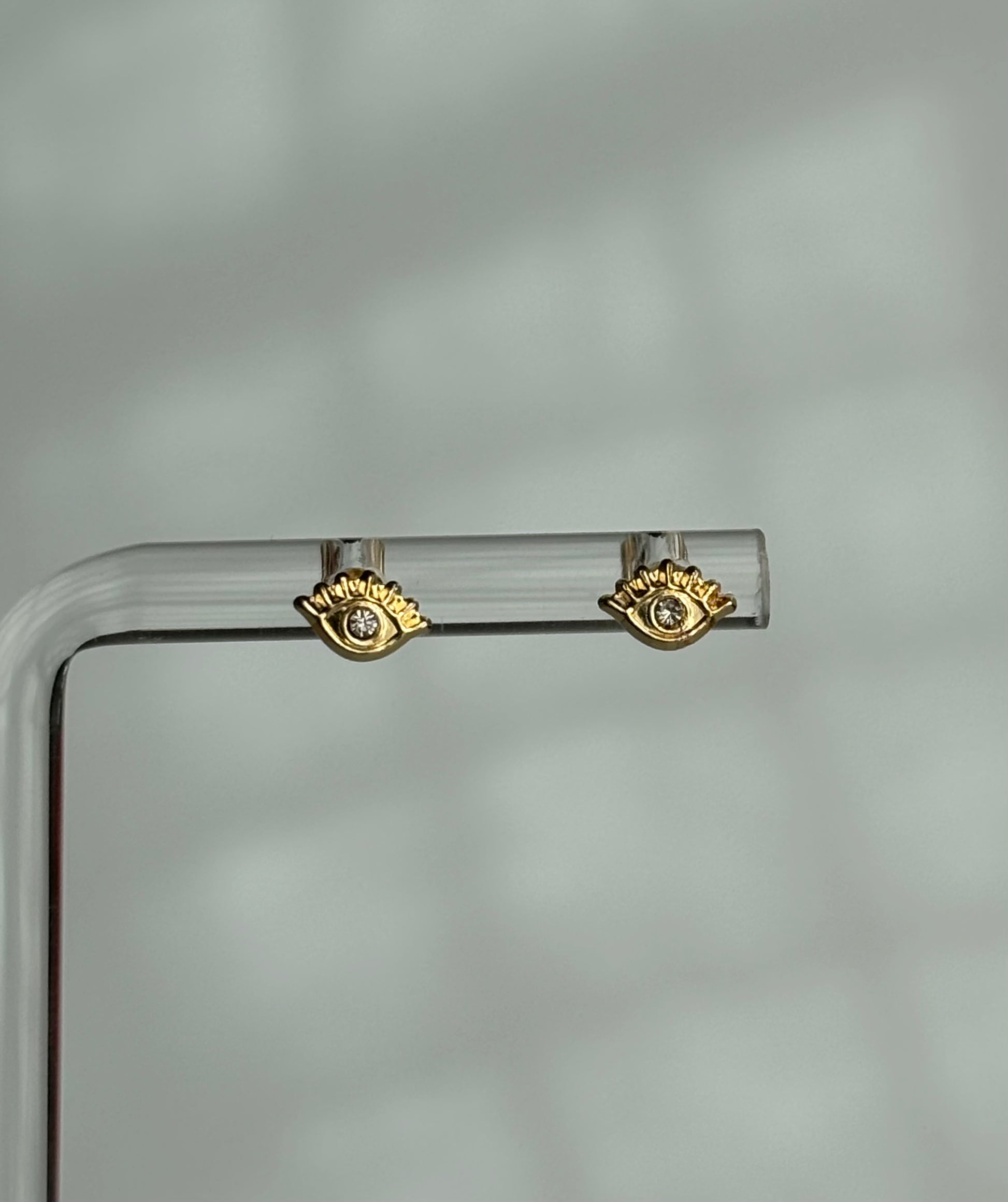 Add a little edge to your look with our Gold Evil Eye Stud Earrings! Made from solid 14k gold, these sleek and delicate earrings add a touch of class to any outfit. With a minimalist design and screwback closure, these earrings are both stylish and secure. (See what we did there?)