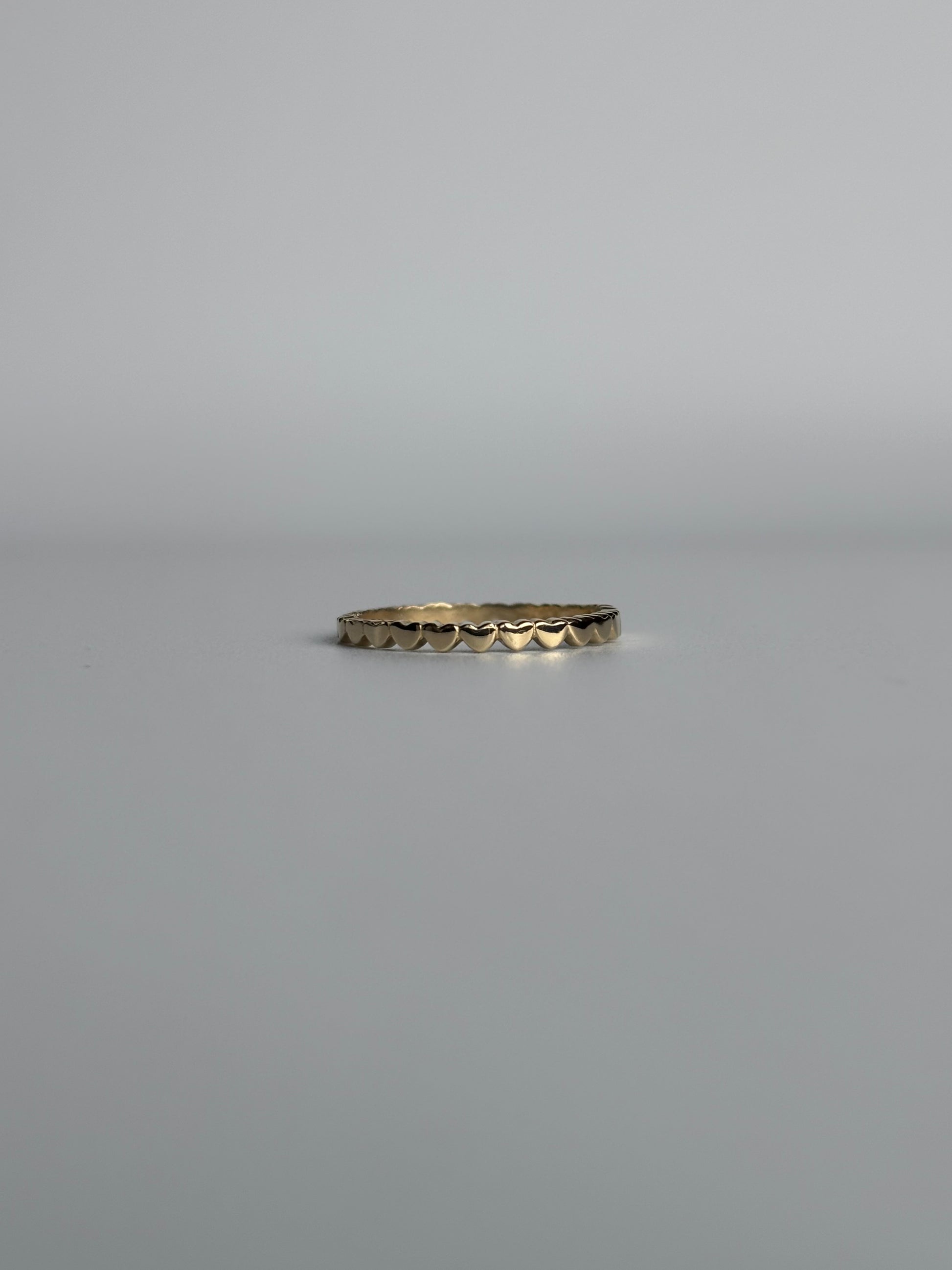Add a touch of fun and elegance to your jewelry collection with our Gold Heart Pattern stacking Ring. Made with solid 14k gold, this versatile piece is perfect for stacking and creating unique looks. Simple yet stunning, this ring is a must-have for any fashion-forward individual. (Psst, it's also great for showing off your playful side!)