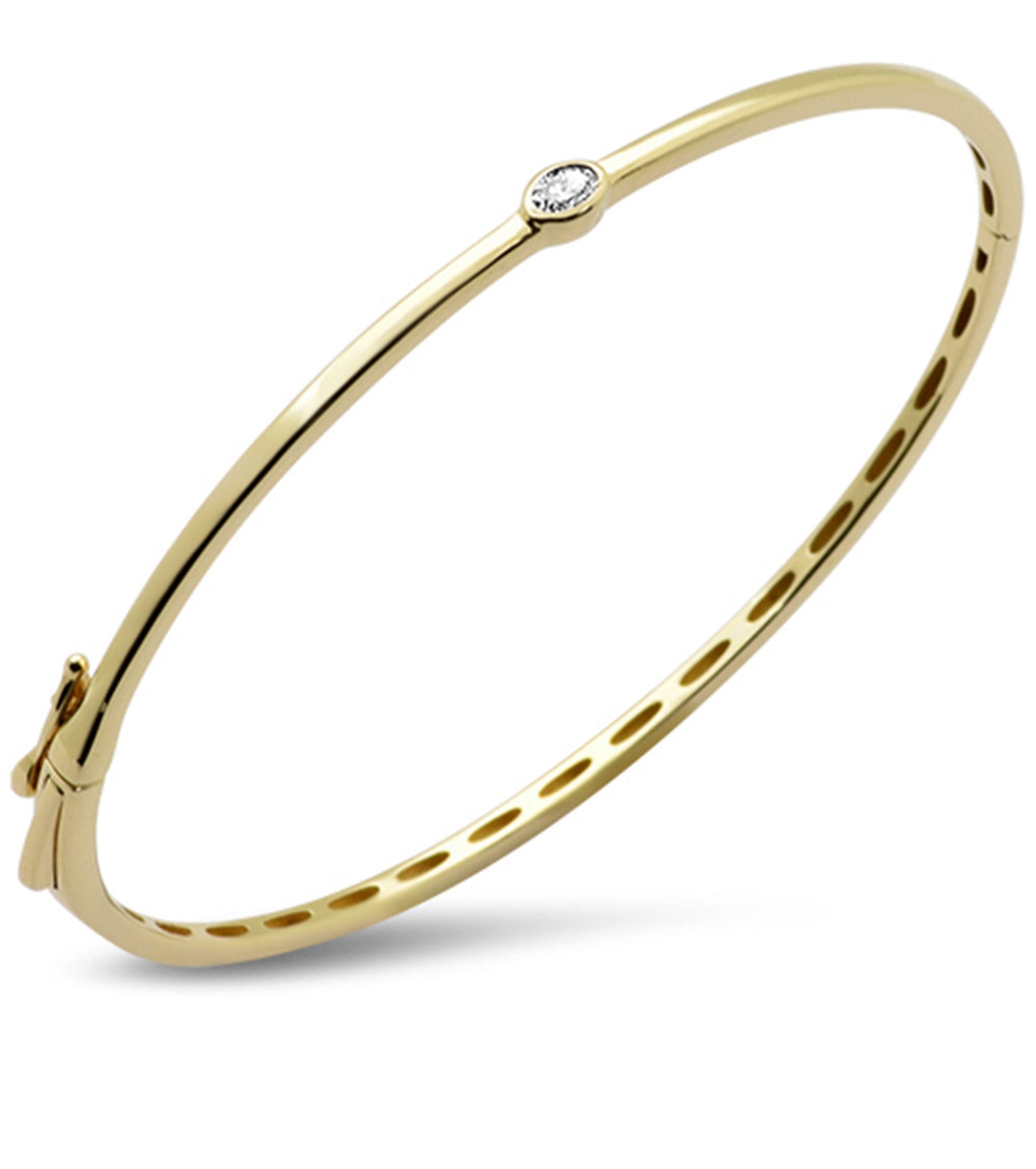 Gold Oval Diamond Solitaire Bangle Bracelet