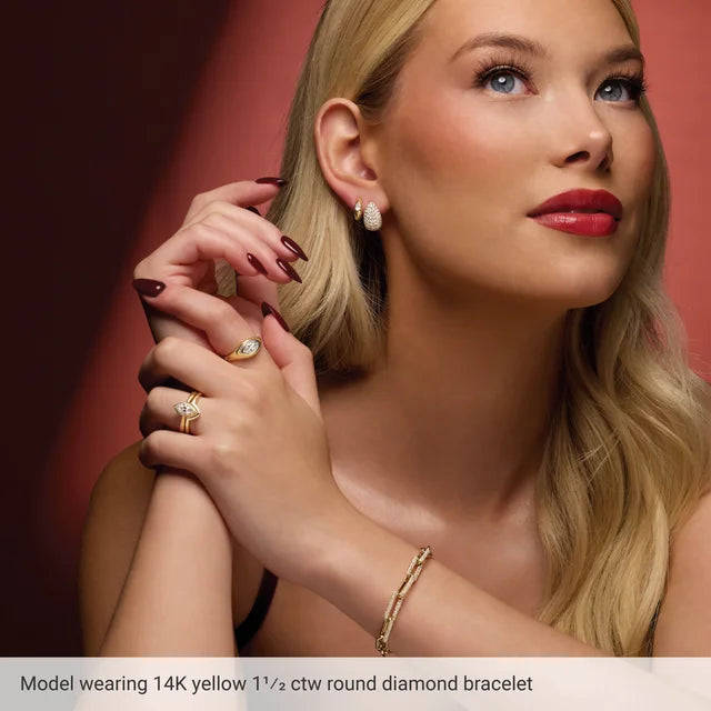 This sophisticated bracelet showcases 1.50 carats of lab-grown diamonds set in lustrous 14k gold, creating an elegant paperclip chain design. The precision-cut stones catch light beautifully, offering the brilliance and durability of natural diamonds with a more sustainable choice. Perfect for layering or wearing solo, this piece combines contemporary style with timeless luxury, making it an ideal investment for everyday elegance or special occasions.