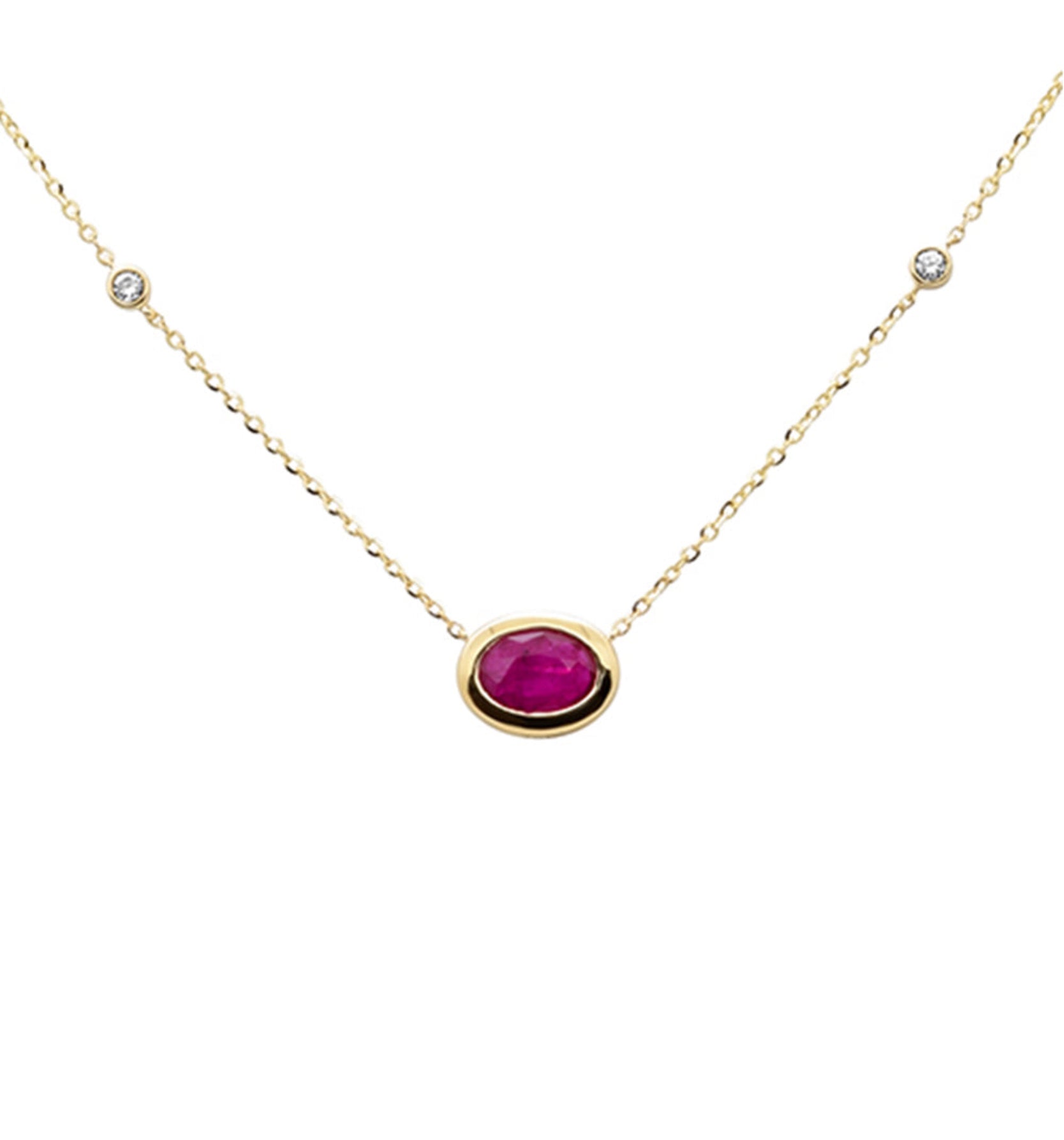 Crafted with 14k solid gold and adorned with 0.05cts of natural diamonds, this necklace features a stunning 0.88ct ruby center stone in a secure bezel setting. Perfect for adding a touch of elegance and luxury to any outfit, and at 18 inches long, it's the ideal length for everyday wear.