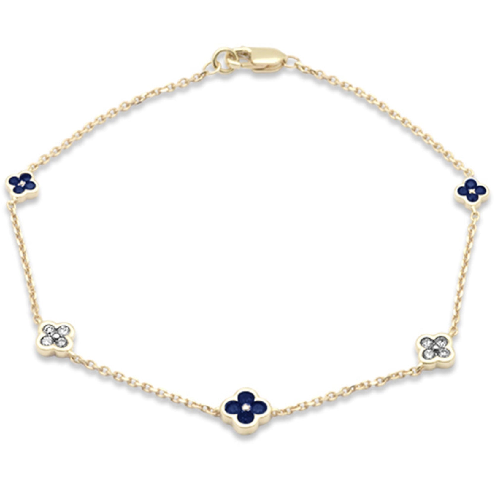 This stunning 14K solid gold bracelet features natural diamonds and blue sapphires, the birthstone of September. Its delicate and elegant design makes it the perfect addition to any outfit. Add a touch of color to your look with this dainty and timeless piece.