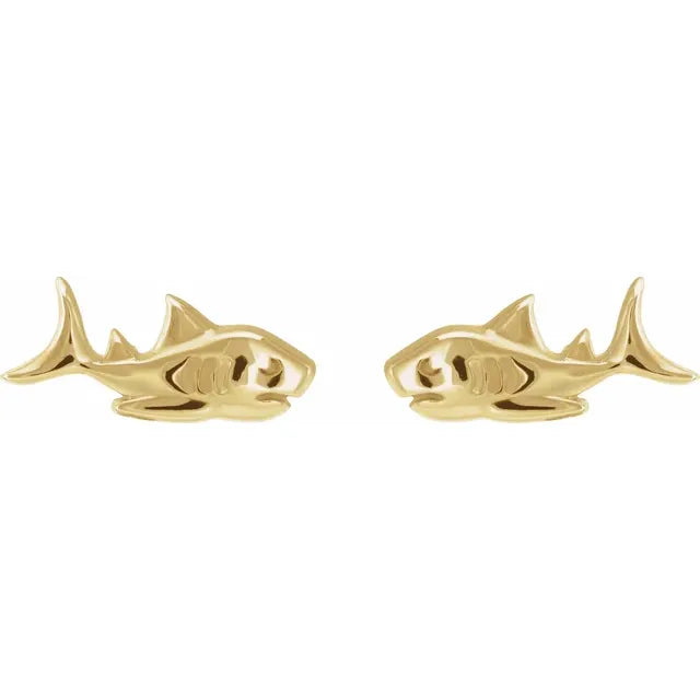 Crafted in 14k gold, these shark earrings combine sophisticated design with playful symbolism. The precious metal ensures lasting durability and a luxurious finish that complements any occasion. Perfect for those who appreciate distinctive jewelry that makes a statement—whether worn as a conversation starter or a personal emblem of strength and confidence. A refined choice for collectors seeking meaningful pieces with character.