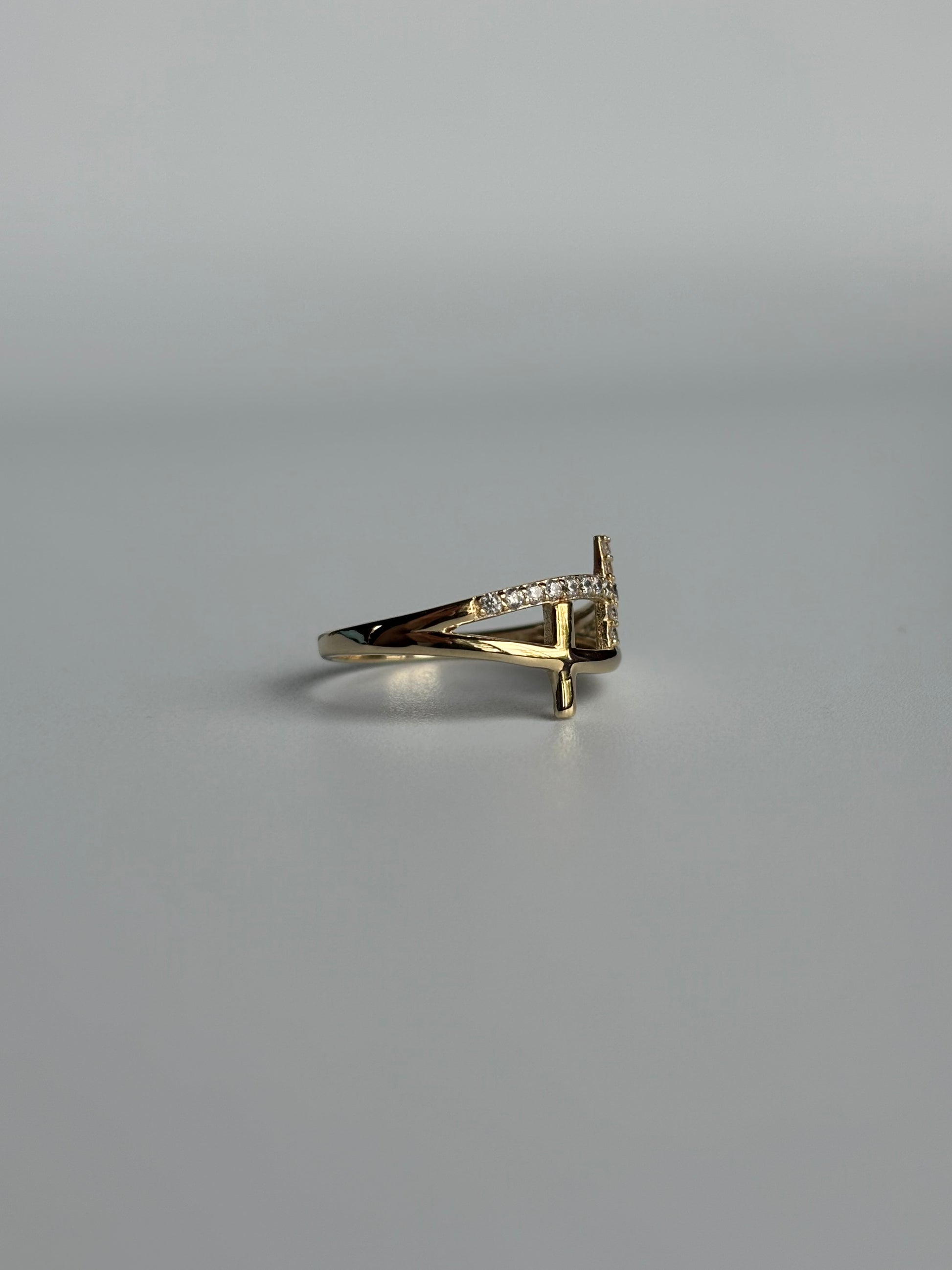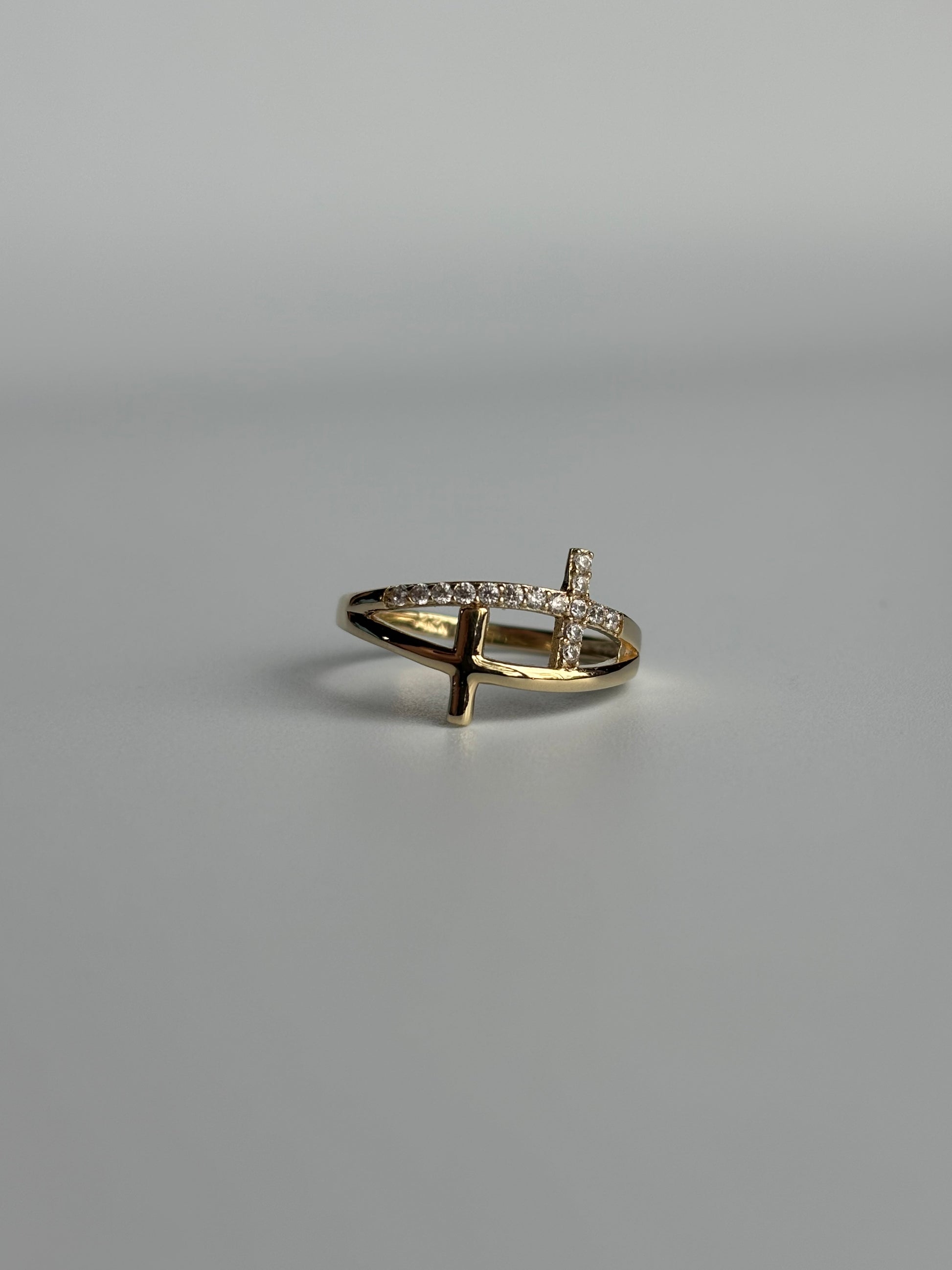 This Stacked Pave Cross Ring is solid gold with a 14k setting, ensuring quality and durability. The pave setting adds an extra touch of sparkle and elegance, making it perfect for everyday wear. Shine bright and make a statement with this beautiful ring.