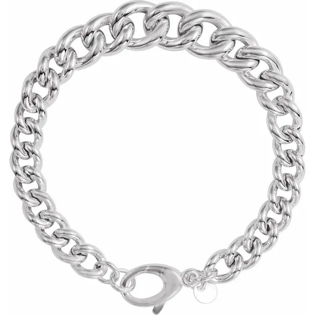Sterling Silver Graduated Curb Bracelet This refined 7.75-inch bracelet showcases a graduated curb design crafted from 925 sterling silver, weighing a substantial 19.50 grams of solid metal. The 12mm links taper gracefully along the wrist, creating visual dimension and sophisticated movement. Engineered with tarnish-resistant properties, this piece maintains its lustrous finish with minimal maintenance, making it an enduring addition to any jewelry collection. The substantial weight and quality construction ensure durability for everyday wear or special occasions.
