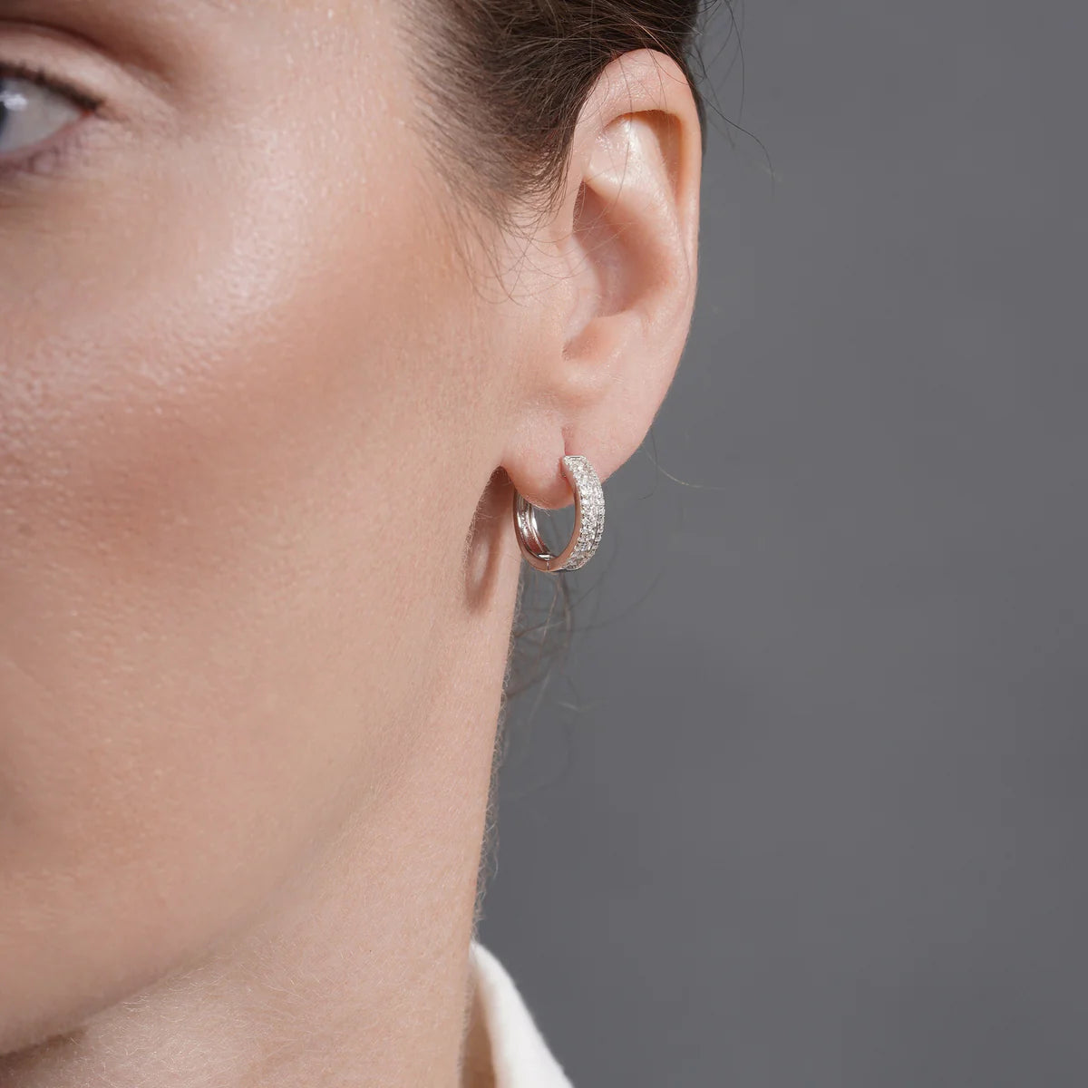 This elegant hoop is crafted from 925 tarnish-resistant sterling silver, ensuring long-lasting shine and durability. With the added brilliance of Moissanite, it is the perfect accessory for a touch of sophistication and luxury. Say goodbye to constant polishing and hello to effortless elegance.
