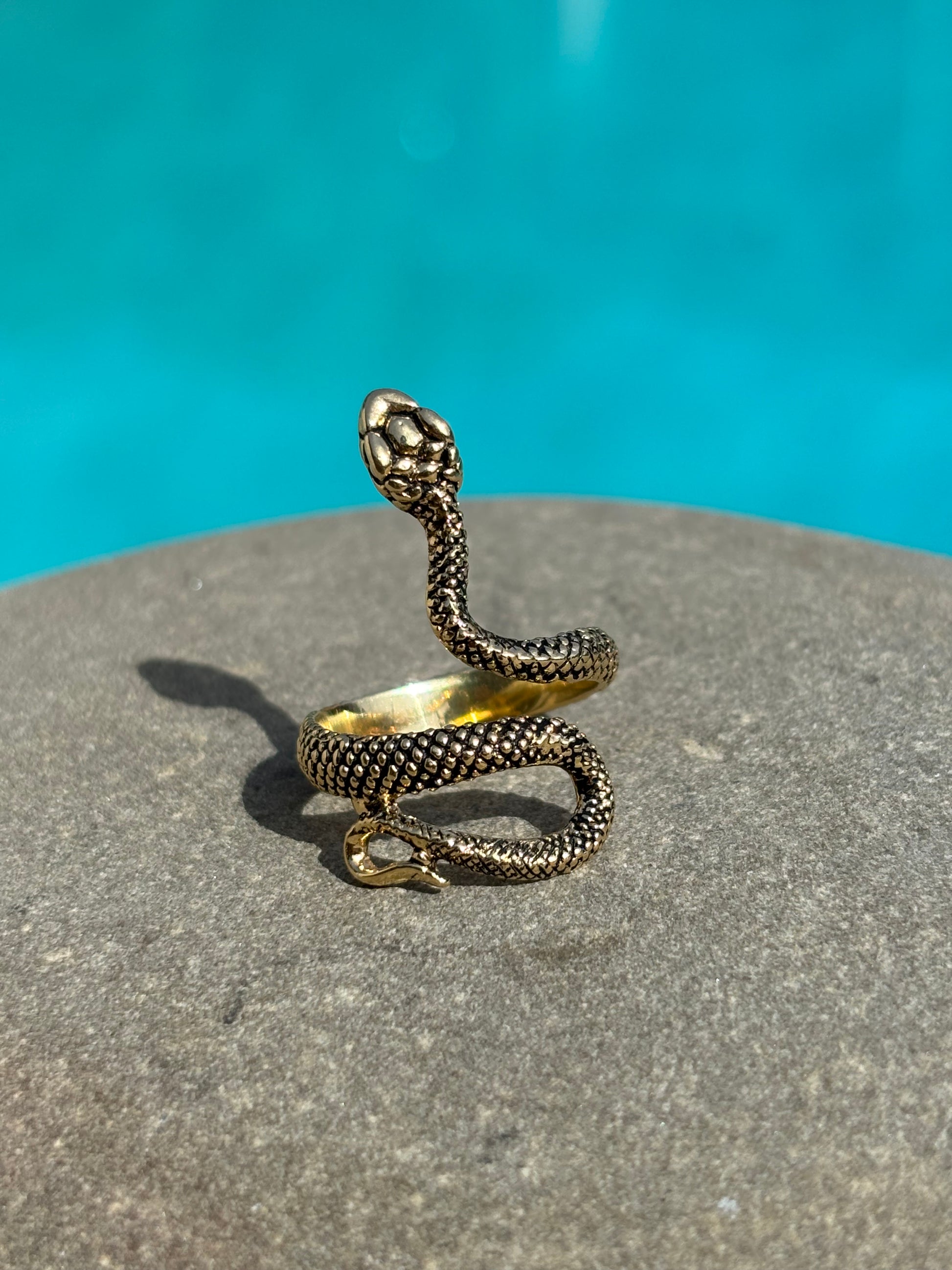 Slither your way into style with our Wrap Around Snake Ring. This solid 18 karat gold ring is handmade with intricate snake detailing that wraps around your finger. A nod to the Year of the Snake, this unique design adds a touch of playful sophistication to any outfit.